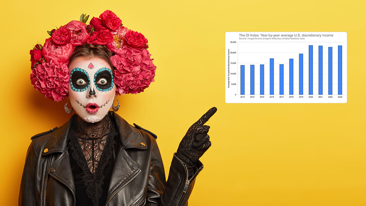 Frugal Gnome used consumer expenditure data from the BLS to calculate average DI figures. This includes after-tax income and those expenditures deemed by Frugal Gnome to fall into the category of “necessary expenses and minimum obligations.”